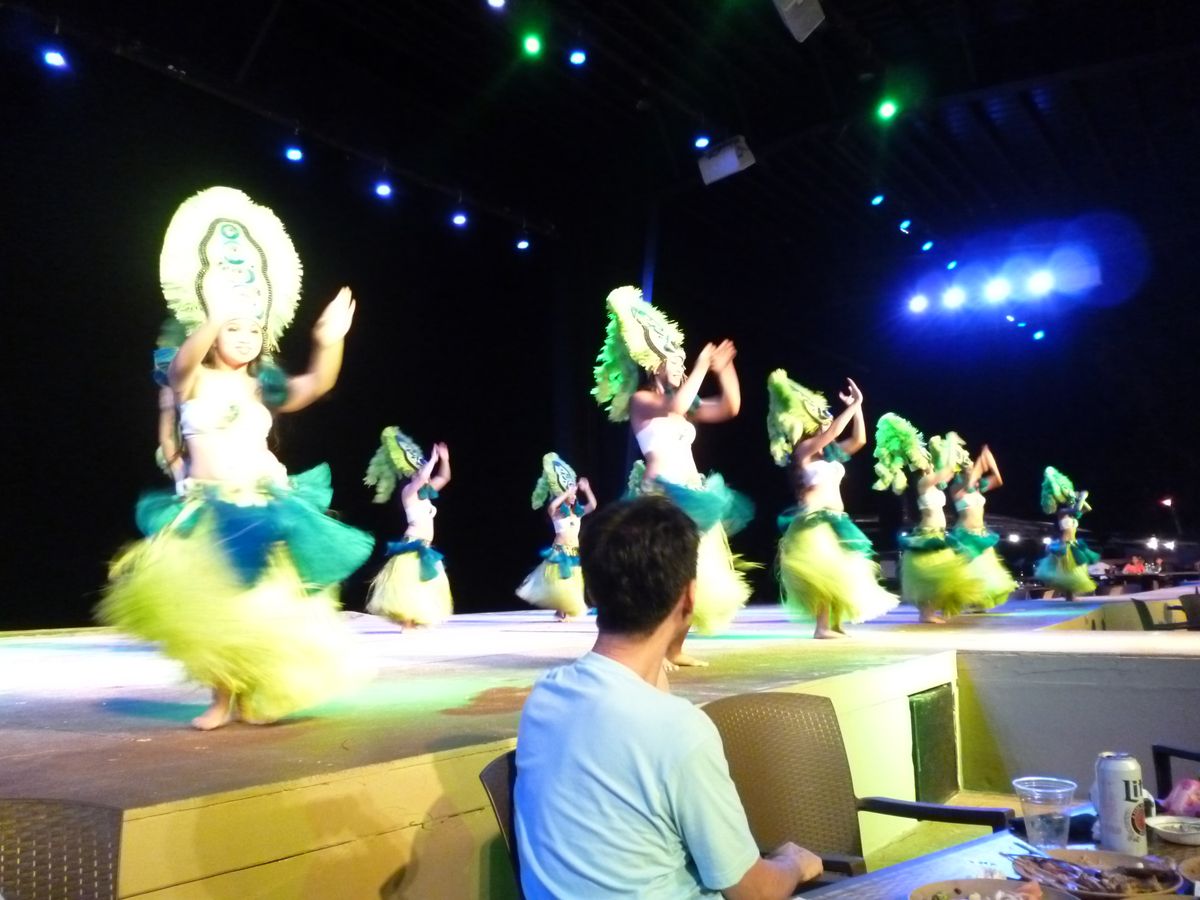 2家族7名で参加しました。人数が多かったのと、1歳の子どもが3人いてベビーカーが置けることが必須だったので現地での受付の時に交渉したら、最前列のエリアに通してくれました。客席はすり鉢状になっていて後方の階段を降りたところがビュッフェのエリアなので、前の方の席だと階段の上り下りが大変です。決してバリアフリーではありませんが、例えば車椅子の方が着席する際に車椅子の上げ下ろしを手伝ってくれるくらいのことはしてくれます(帰りにうちのベビーカーを下ろすのをダンサーの方が手伝ってくれました(笑)。)。ビュッフェはバーベキューコーナーがいつも長蛇の列で、グループの人数が多ければ手分けして他の食事をとることができますが、あの列に並んでいたら他の食事が取れないと思います。デザートがショー開始直前に出てくるので、狙っている方は気にしていた方がいいと思います。登場した瞬間、また人が群がりますから。ショーは、ストーリ―仕立てですが、いろいろな種類のダンスが見られて楽しいです。それと、本当に舞台後方に壁がなく砂浜&海ですので、サンセットと段々暗くなっていく様子がとてもきれいでした。開演前は舞台に上がって写真を撮っている人や子どもが走り回ったりしてました。