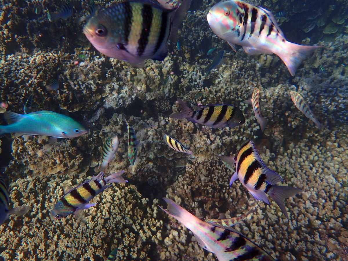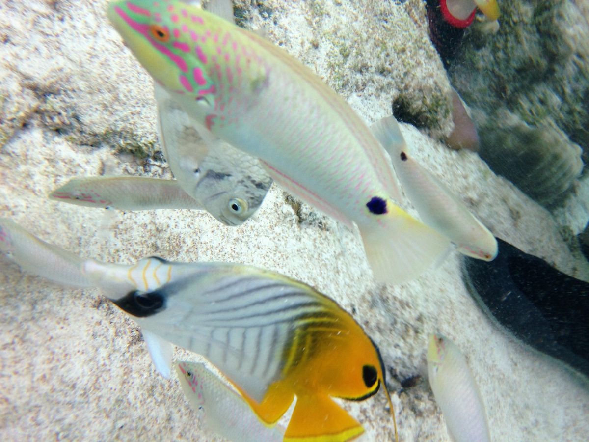 シュノケールでは味わえないほど魚が間近まで迫ってきて、