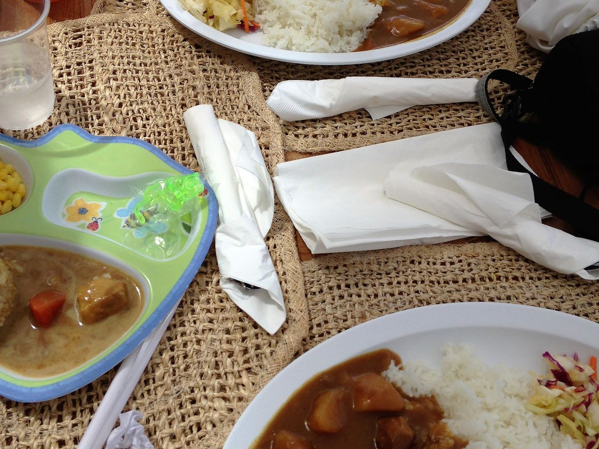 お昼ですが、コースによってカレーの方とバーべrキューの方がいますが、カレー自体は日本の家庭的なカレーですが結構量あり、ホテルやレストランでバのーベキューやらで肉に飽きてきていたので今回カレーで十分でした。ただしカレーのコースにはバスタオルがついていませんのでホテルからこっそり持ち込むか、1枚$4払ってレンタルする必要がありますので注意が必要です。午前中のみの方はここでお別れです。