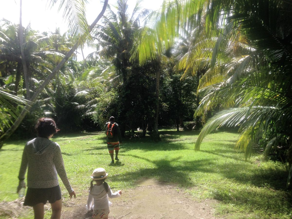 私どもは最後まで滞在する(午後3時)コースでしたので、午後はお散歩のオプショナルツアーに行ってみました。3歳児の子供でも行けるような感じで時間は40分ぐらい、ヤシの木やココパームヤシ、パパイヤの木、自生しているハイビスカスなど熱帯植物の案内をしてもらい、