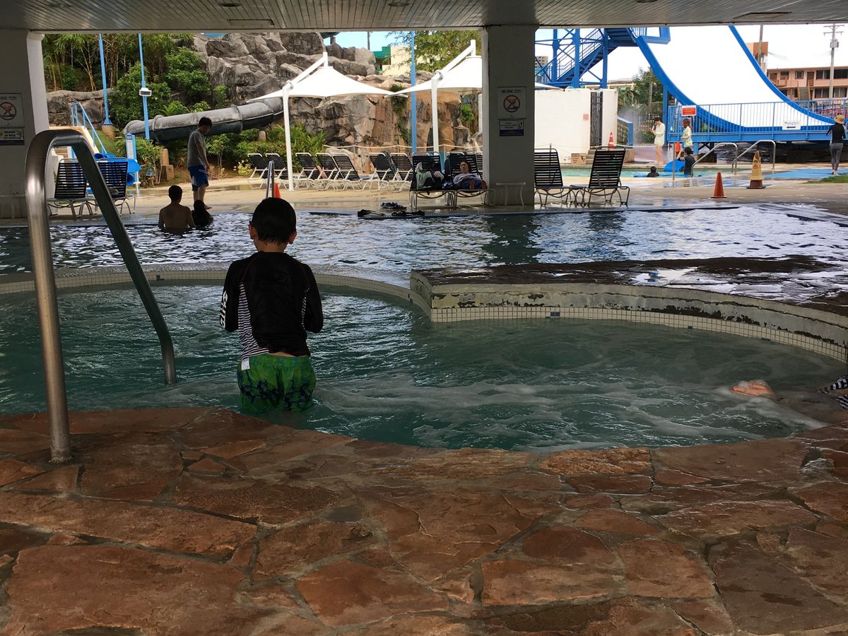 平日だったからかプールはガラガラでたっぷり楽しめました。ジャグジーもありほっと一息にも◎更衣室も広かったです。ロッカーは小さいですが鍵を渡されるので開け閉め自由ですので携帯や小銭は必要な時だけ出し入れできて便利です。食べ物は種類が少ないのであまり期待できず。美味しくもないし。高いし。ビーチにもすぐに行けますが今日だけなのかな?海は汚かったです。シュノーケリングしても見えないぐらい濁ってました。沖縄の方が数倍綺麗!カヤックで島までは結構遠いかな?いい運動になるぐらいです。波プールは奥まで行けないので浮き輪に乗ってたらすぐに岸にあがる感じが残念。マンタはすごい高さで私は断念しましたが挑戦したほうがよかったかなと今になって後悔!日本人より韓国人が多かったです。