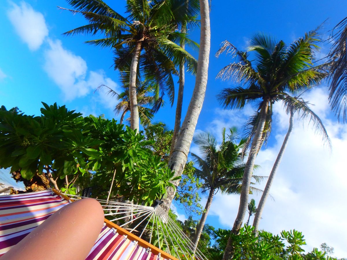 前日はスコールが続き天気も快晴でスタッフの方も皆さん親切で海も綺麗でしたしハンモックでの昼寝も最高でした。