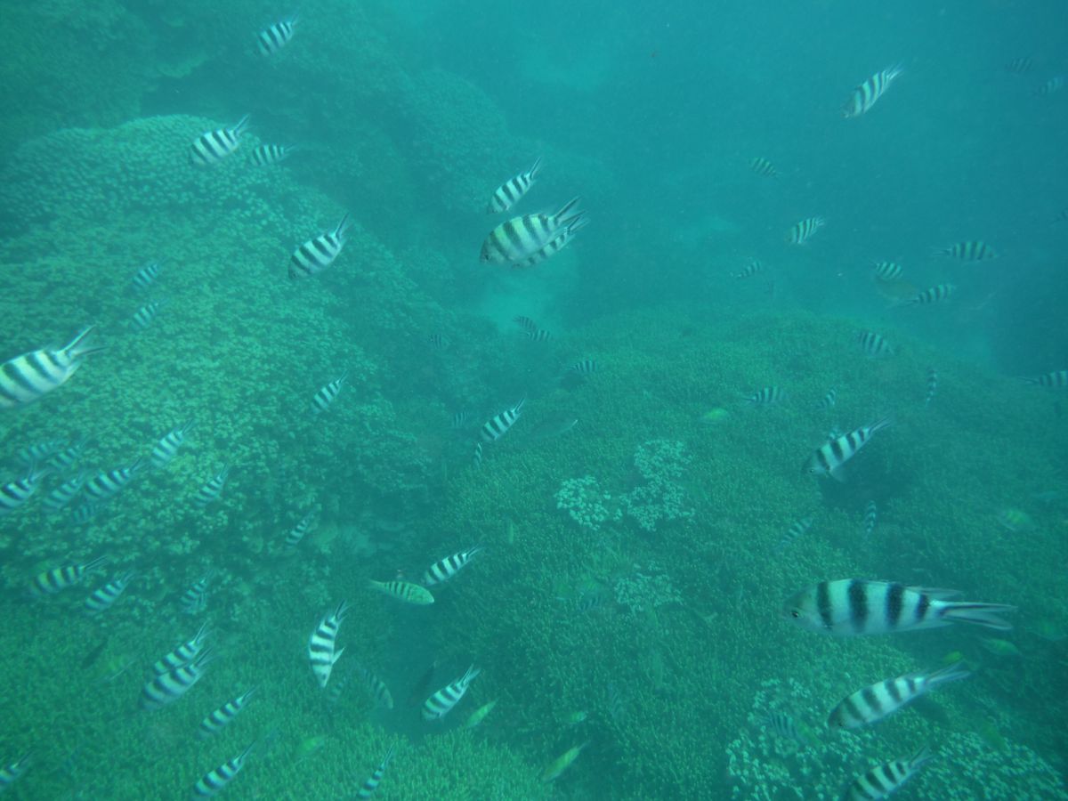 イルカも見ることができました。イルカ鑑賞のあとはシュノーケリングです。30分くらい。水の中にいると疲れるのでちょうどよい時間です。