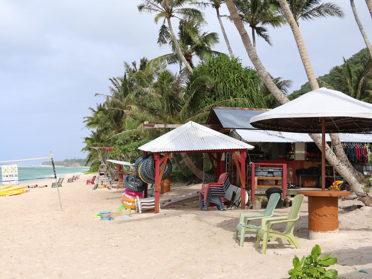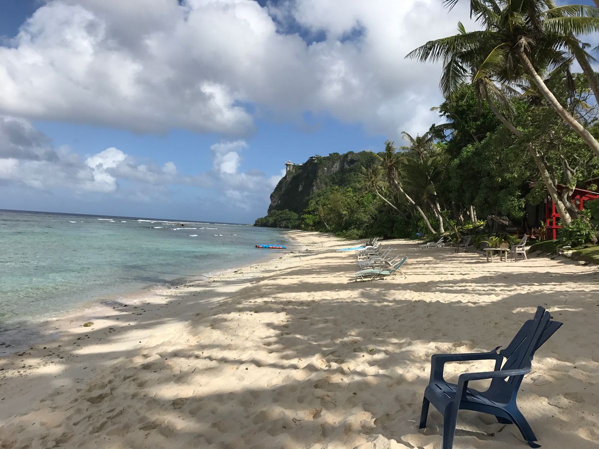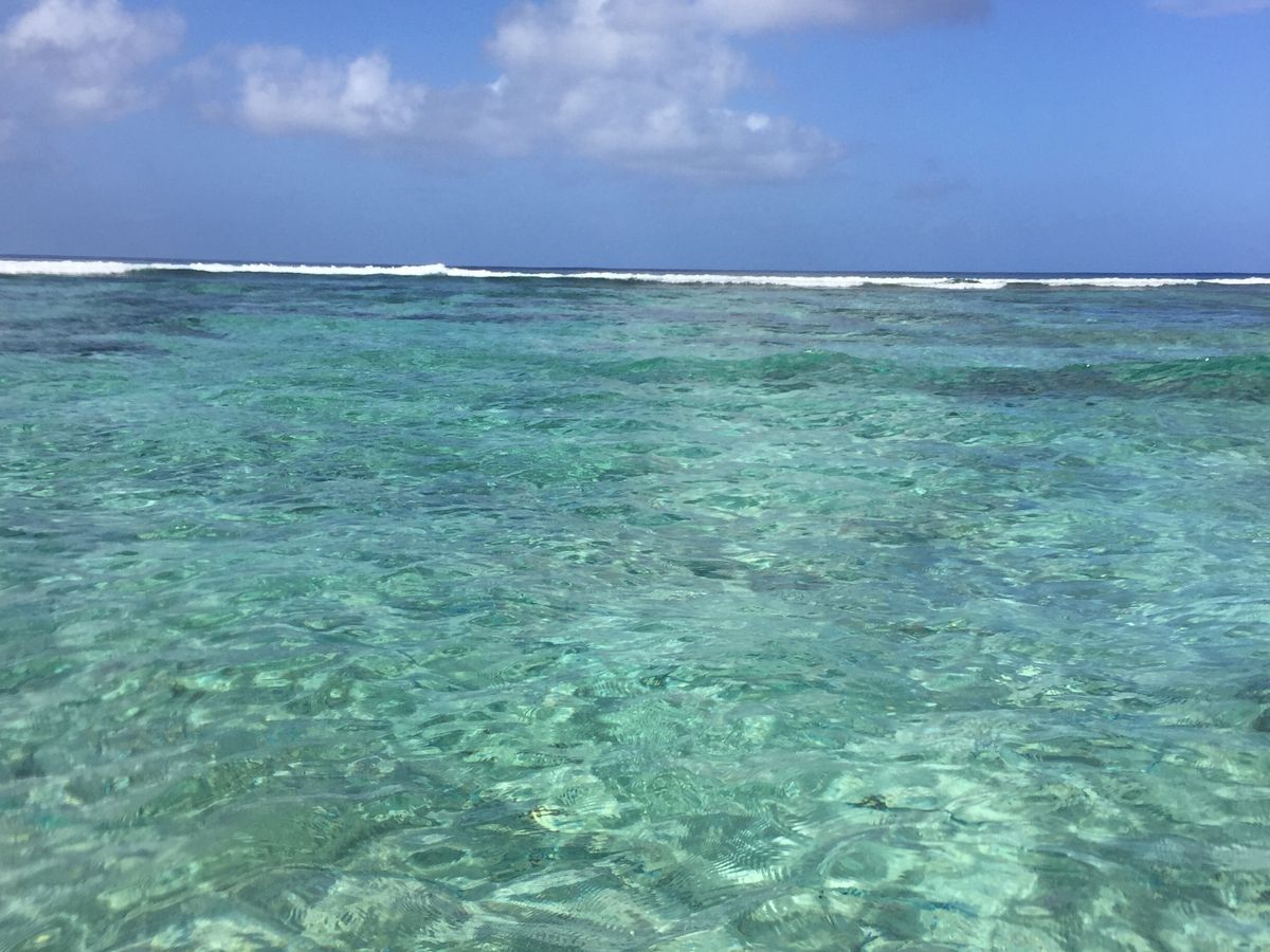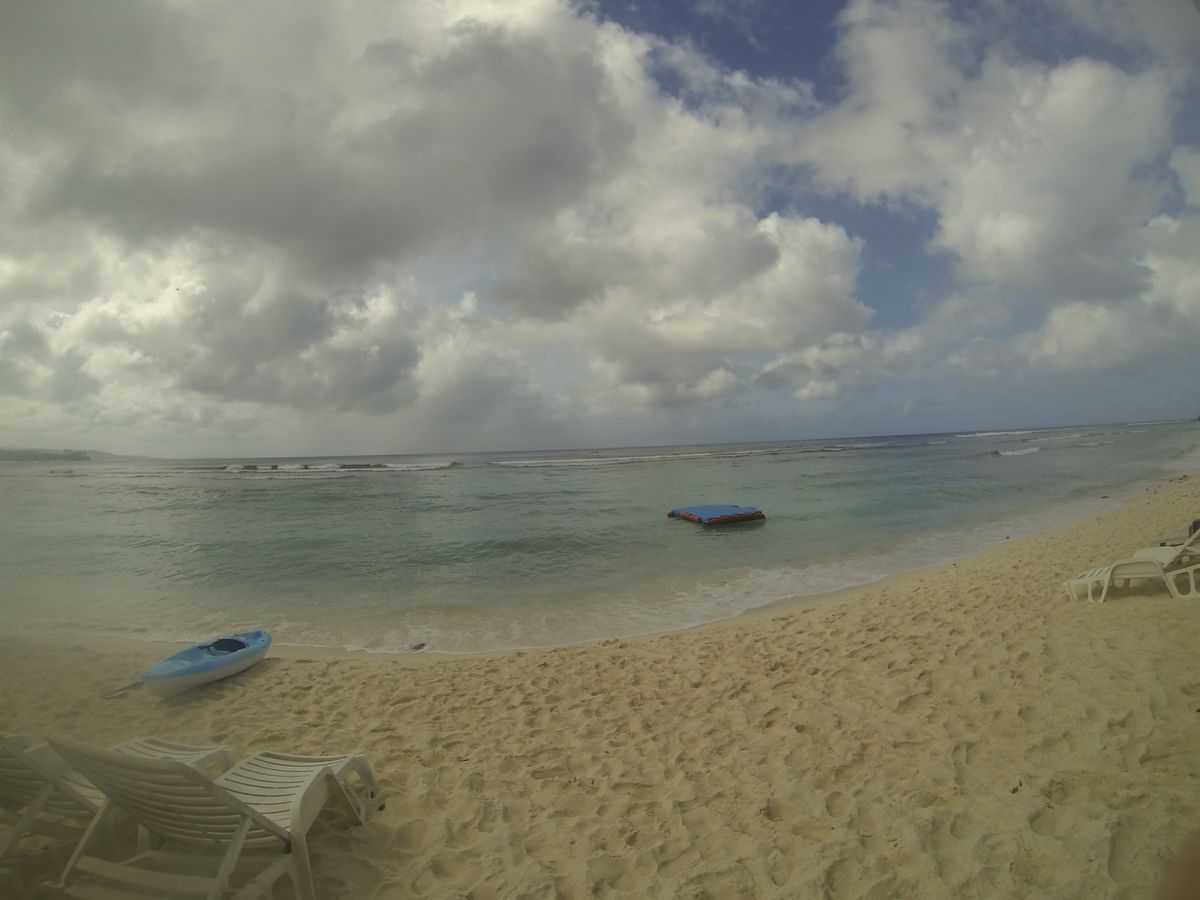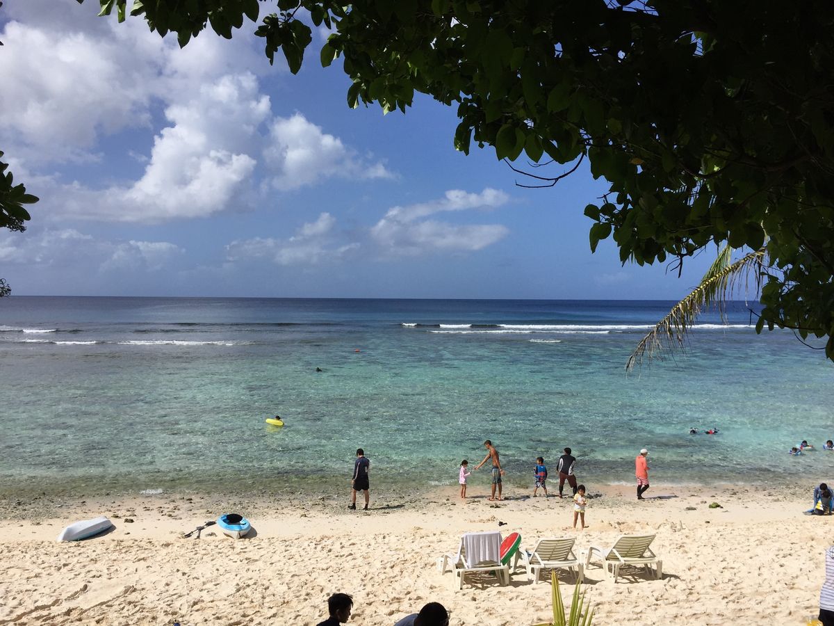 ビーチも白い砂できれいです。グアムのオンワードの前にある島へカヤックで行ってシュノーケルをして見る海よりも断然近くにすぐ色様々な魚たちを見ることが出来るので、子供さんでも大丈夫かと思います。魚のエサがついていましたがばらまくとすごく寄ってきます。魚に攻撃されたりもありませんでした。その日は風が強く風に煽られた子供が波打ち際で転んでそこから海への恐怖から海はほとんど親だけ入りました。が、ビーチではお砂場グッズを借りて遊んでいました。また小さなキッズ公園のような箇所もあり、ゆっくり過ごしました。