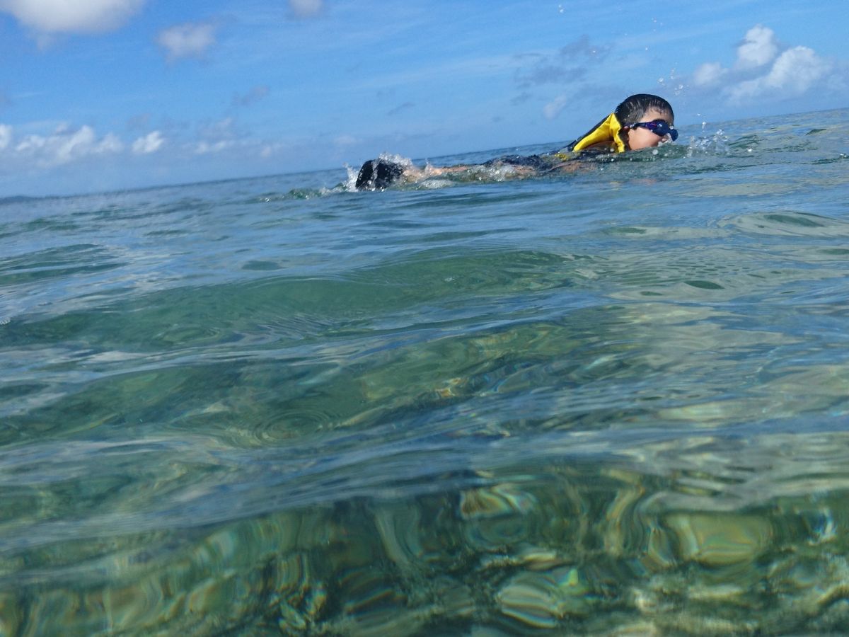 小さい子ども連れで最初は不安でしたが、とても楽しめました。上の子は夫とカヤックに乗ったり、みんなそれぞれ楽しめていました。私も最初の目的は果たせませんでしたが、海で思う存分遊ぶことができて満足です!上の子はグアム旅行の一番の思い出になったようで、毎日毎日同じ話をしてくれます。