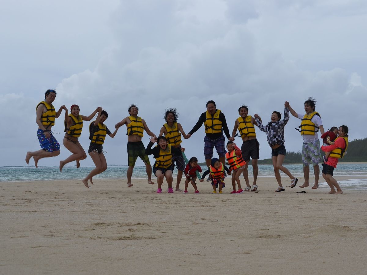 寒い 雨が突き刺すように痛い 子供達は震え、バナナボートを傘に雨をしのぎ まるで地獄絵図 大人11人子供4人各家族カップルに別れ記念写真 もういいから帰してくれ~ その後はジェットスキー波しぶきかスコールかもわからず前が見えない危険な状態!