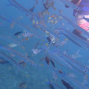 ボート移動の時間も10分〜15分くらい。シュノーケリングの時間も30分以上あったと思います。天候が悪かったので、私はそんなに長くは、遊べなかったですが、連れはずーっと写真を撮ったり、満足してました。透明度も悪くなく、海底の珊瑚も綺麗に見えるくらいの場所っだったので、韓国人の男の子グループは、素潜りをしたりして、楽しんでました。餌はパンを投げてくれましたが、溢れんばかり。キャッチ出来ずに流れていくパンも.......笑