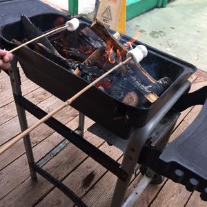 あっという間に時間が経ってしまって帰る準備をしているとスタッフがマシュマロを焼いてクッキーに挟んでスモアを食べさせてくれました。これがまた絶品!