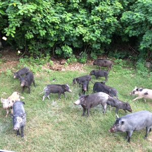 途中でドライバーさんが豚にエサをあげたりしてました笑