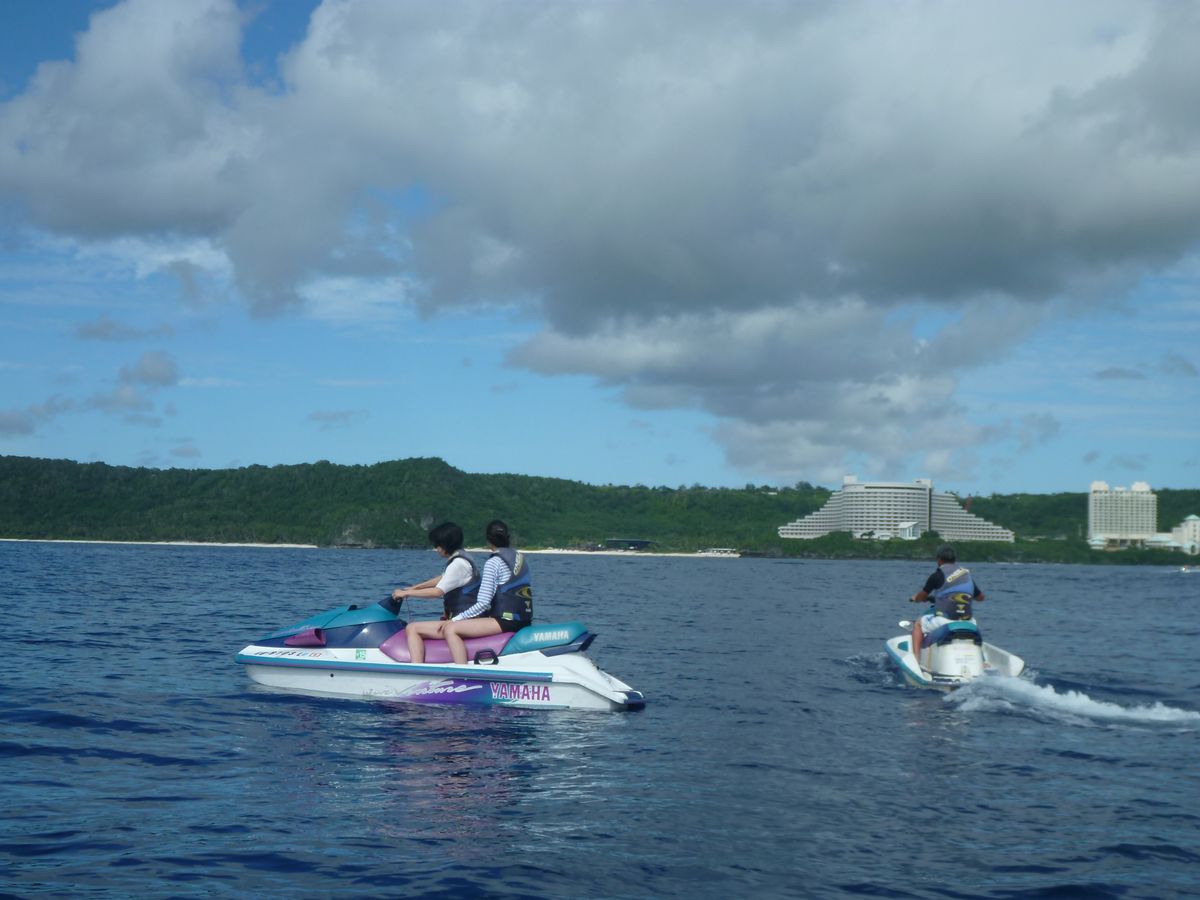 初めて体験したジェットスキー。私は操縦せず後ろに乗っているだけで彼が運転したが、十分楽しめました。あいにくの天気でしたが、ジェットスキーの最中は晴れて素晴らしい景色を楽しめました。