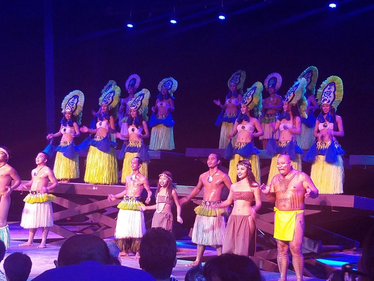 旦那さん家族と私の家族と総勢11人で参加しましたが、ショーを目の前で見れる特等席に案内してもらいました。テーブルに着くとお肉や野菜の盛り合わせが1人ずつあり、缶ビールがテーブルの真ん中に置いてありました。自分で注ぐことができる生ビールやソフトドリンク、アイスも、サラダや軽食なども食べ飲み放題なのでショーが始まる前からお腹いっぱい(笑)食べ始めてから1時間くらいするとショーが始まります、ダンサーさんたちがいろんなパフォーマンスをして盛り上げてくれますw途中、ステージに連れていかれ踊りました(笑)終盤にさしかかると事前にお願いしてた旦那さんの両親へのお誕生日サプライズがはじまり両親がステージに呼ばれケーキを出してくれました(^^)お料理、ドリンク、パフォーマンス全てにおいて大満足ですw