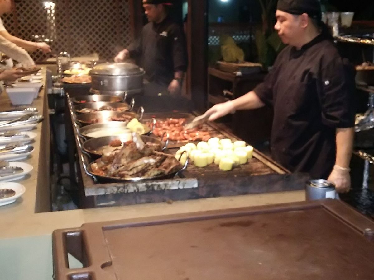 ショーはよかったですよ~、楽しめたし、近くで見られてステキでした。お食事は、すでに焼いてあるものをバイキング形式で取りに行く、というものです。お肉は美味しかったかな。私たちは一般席でしたが、VIP席でなくても十分に楽しめました。初グアムの方にはお勧めです!