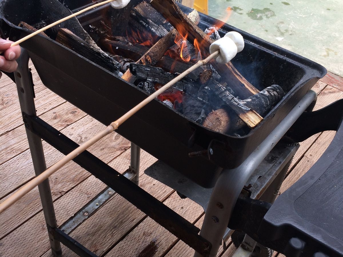 あっという間に時間が経ってしまって帰る準備をしているとスタッフがマシュマロを焼いてクッキーに挟んでスモアを食べさせてくれました。これがまた絶品!