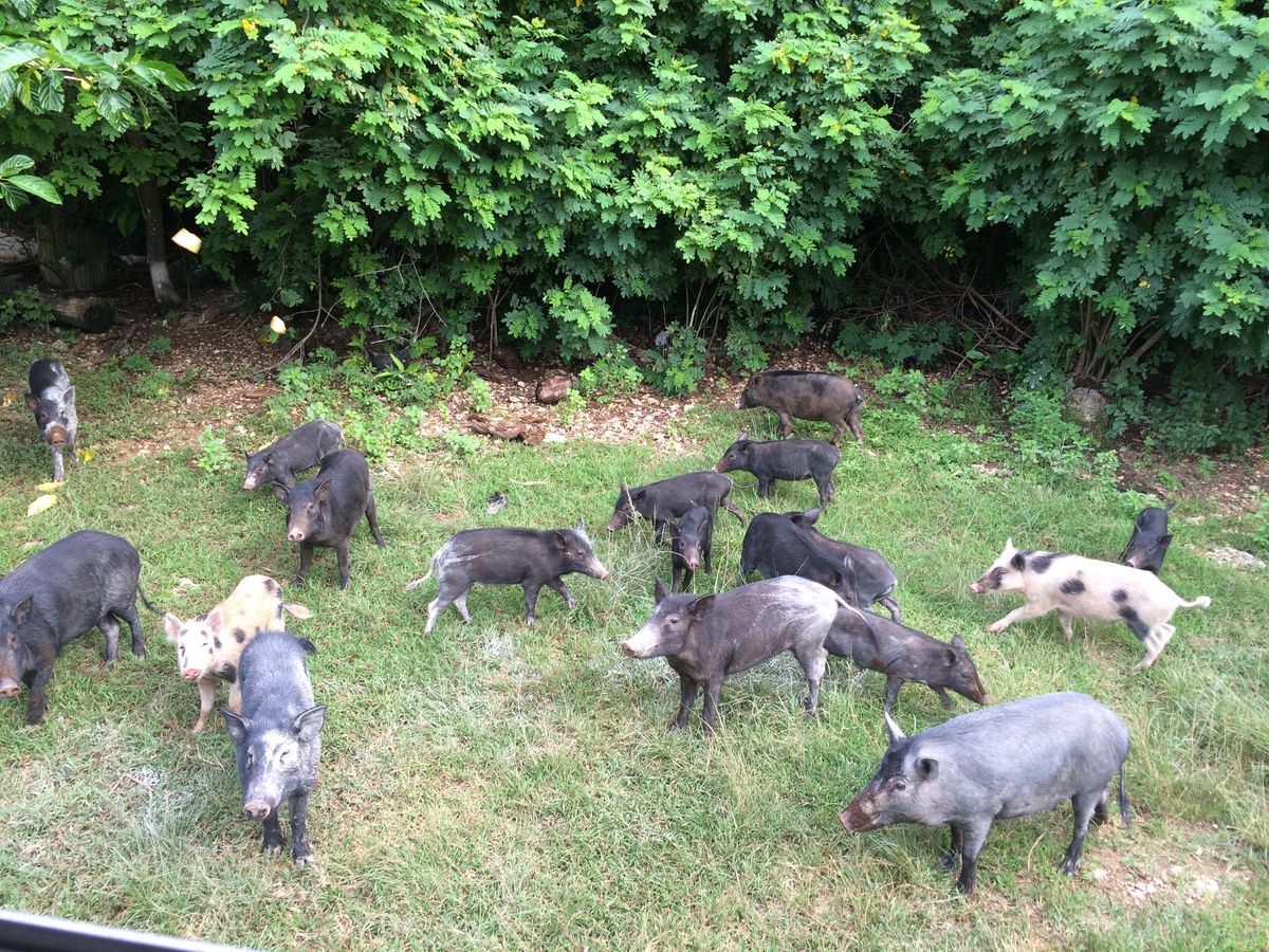 途中でドライバーさんが豚にエサをあげたりしてました笑
