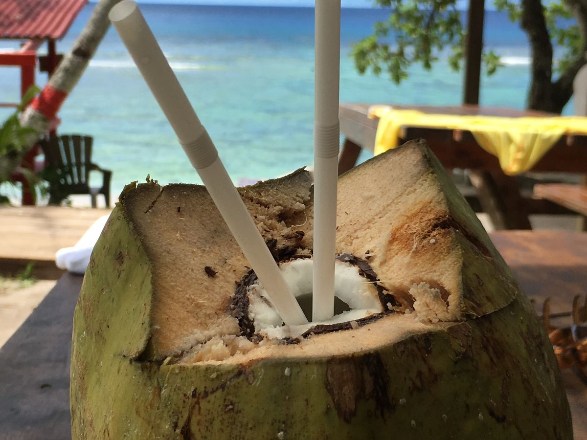 食事の後は、ココナッツデモンストレーション。ココナッツジュースはぬるいけど、雰囲気が楽しめました。生ココナッツとキャンディの組み合わせがすごく美味しかったです。搾りたてのココナッツミルクもいただきました。