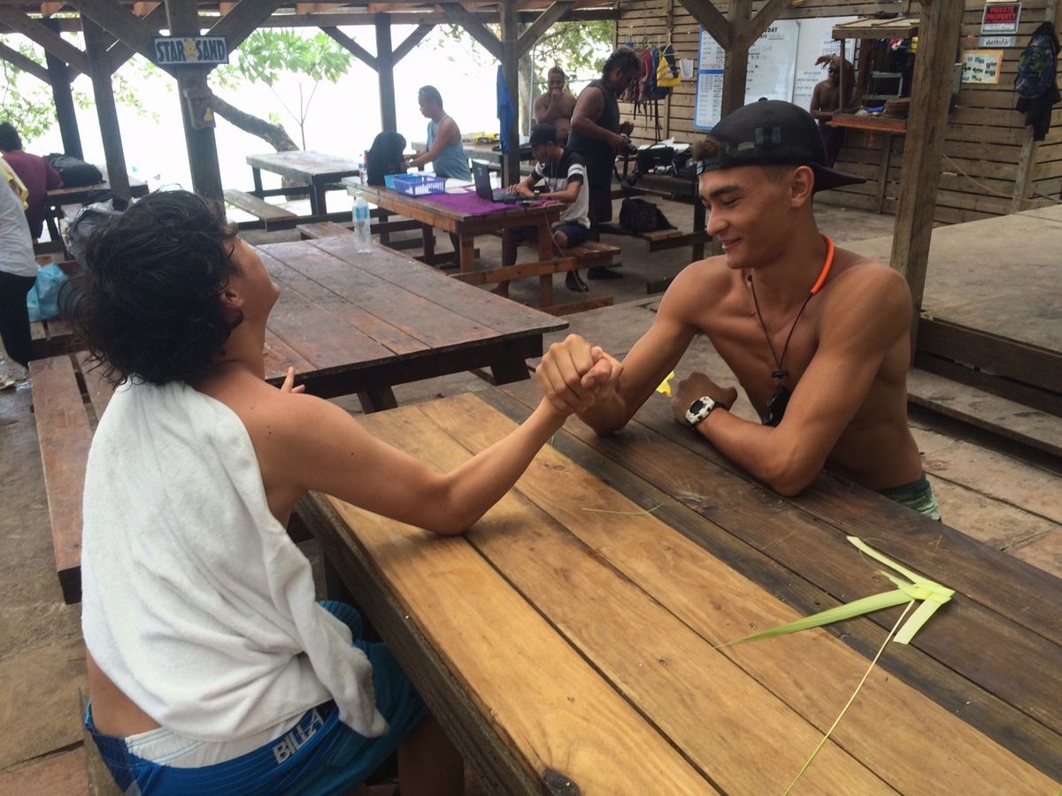 それでも、みんなでダンスに参加したり、お兄さんとアームレスリングしたり…
