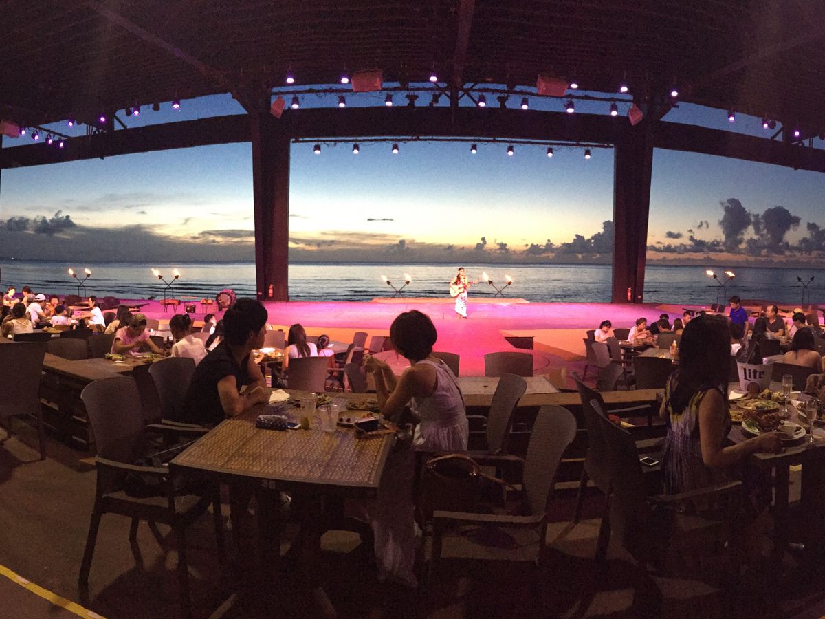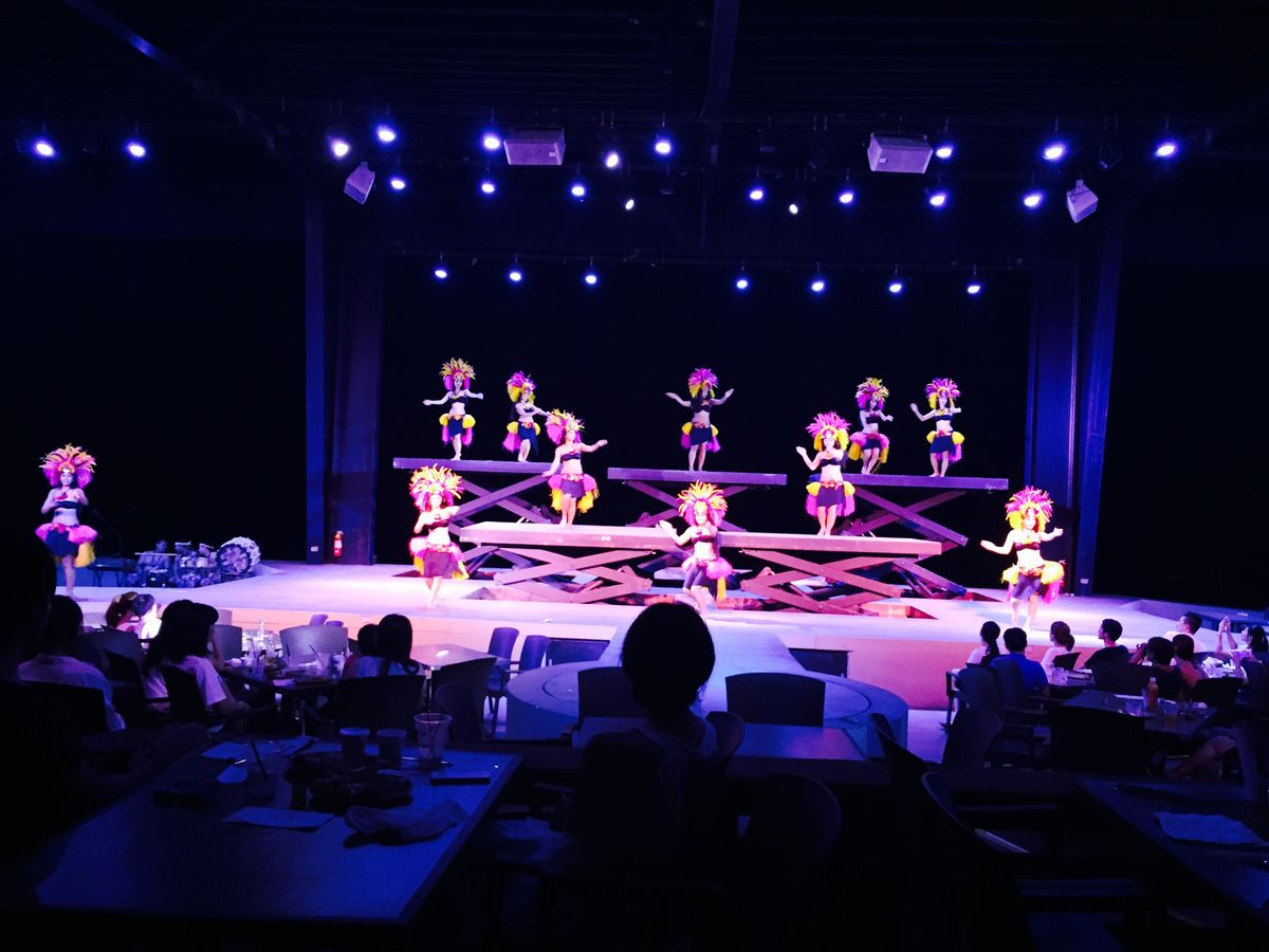 現地のアーティストの弾き語りに耳を傾けながら食事を済ませると、メインイベントのポリネシアンショーへ。