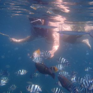 あいにくの天気で、海が荒れ模様でしたが、初めてのシュノーケルでしたが、目の前に魚が一杯、還暦目の前ですが、女房共々、水族館以上に満足、また、天気の良い日に体験したいです。