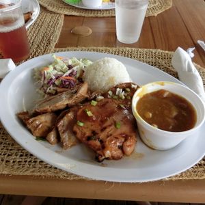 BBQはチキン・太いソーセージ2本・サラダ・茹でトウモロコシ・白米。とても美味しかったです(^-^)
