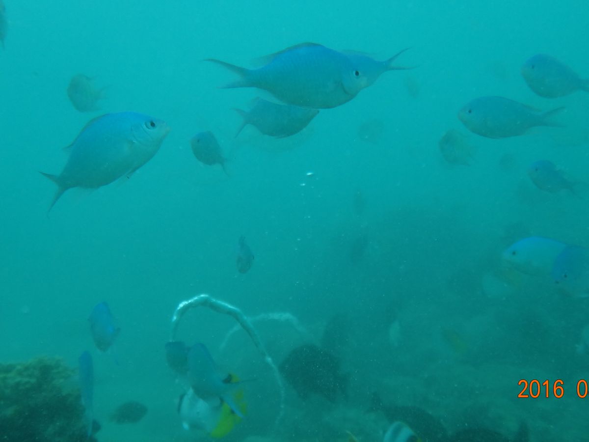 浜辺から、潜っていきますが、近場にもかかわらず、沢山の魚たち。