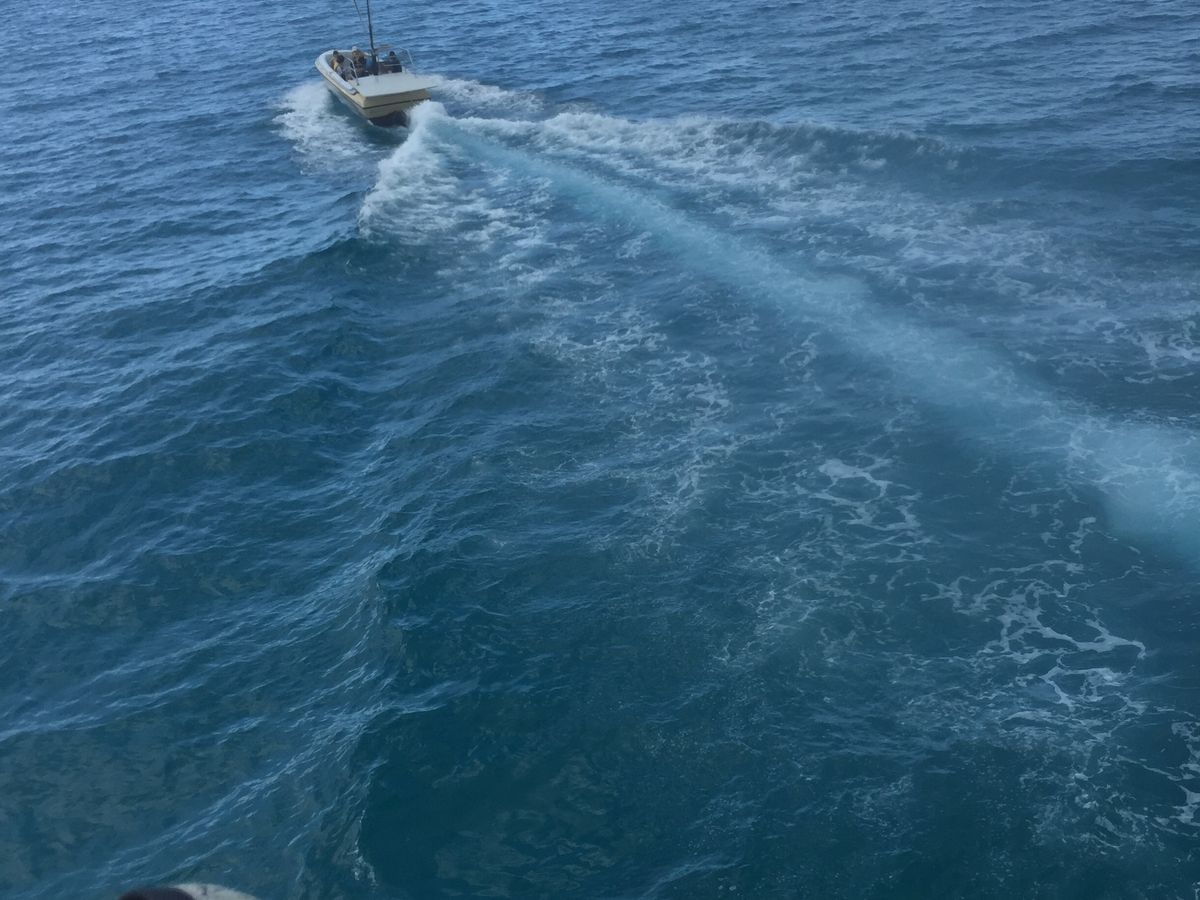 クルーザーをガンガン飛ばしまくって、イルカを探していて、いないとわかれば、停泊してトランポリンにシュノーケリング、滑り台をしたけど、トランポリンなんて10分あったかなかったか?ぐらい。すぐ空気を抜いてまたガンガン飛ばして帰りました。