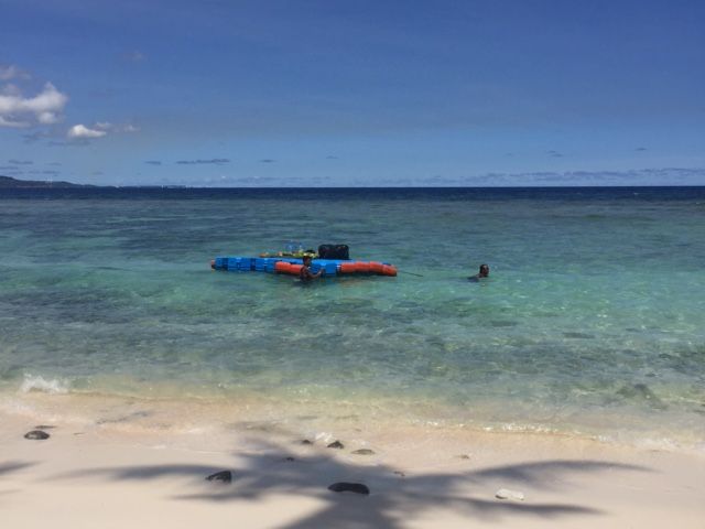 ②フローターで沖合に連れていってくれてのシュノーケリング。ビーチ前と違って、すごいきれい!