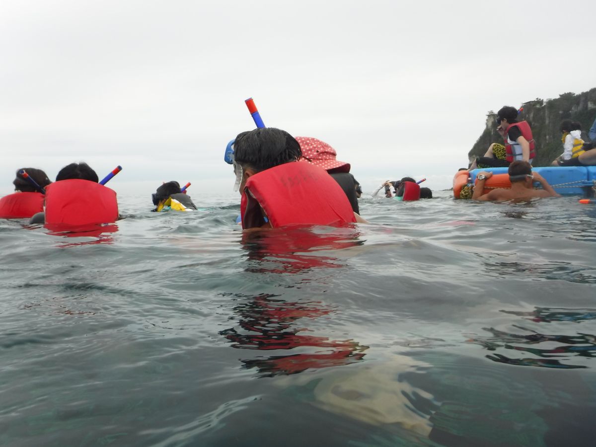 イカダに乗ってのシュノーケリング、飛び込み、エサやり!