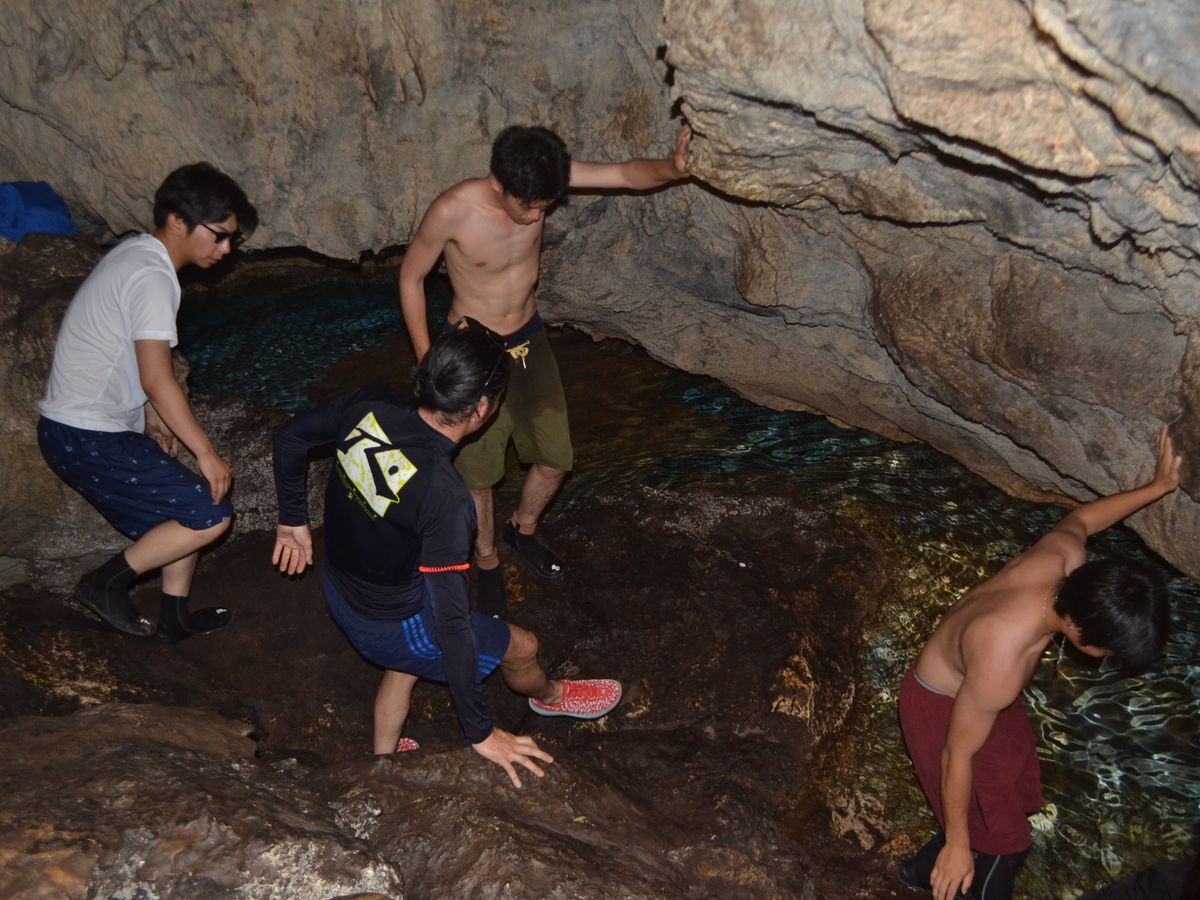 大人はもちろん中学生の子供達もシュノーケルに洞窟探検にと楽しみました。