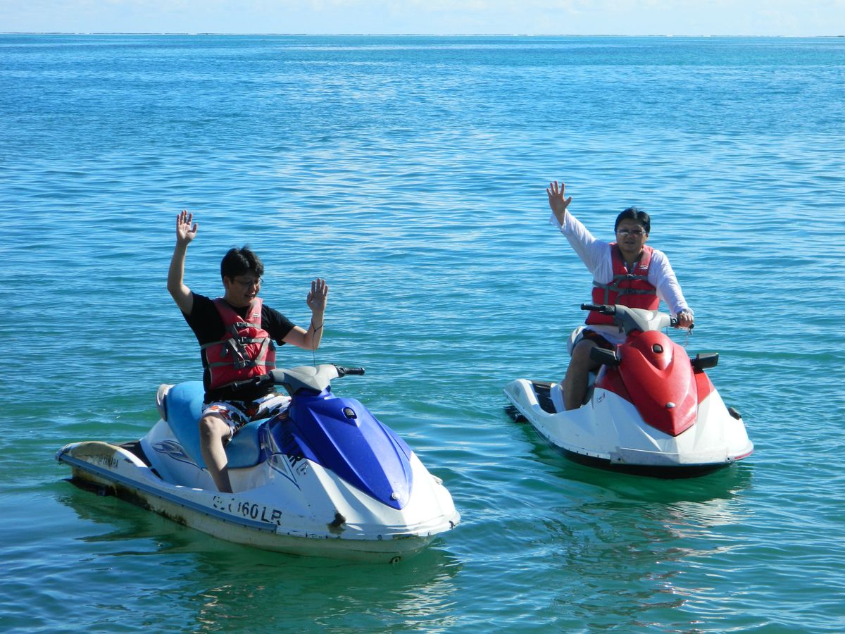 ビキニアイランド? ココス島との間に、干潮時に姿を現す砂浜だと思いますが、それはどうでもいい事で、メリッサ村とココス島の間の浅瀬がレジャーフィールドです。韓国人の経営者で、顧客は韓国人が多く日韓友好に一役かっているのかもね。一通りのマリンレジャーはここでOKです。今回利用したコンボAプランは、初心者にはもってこいの総合プランで、バナナボート、ダイビング、ジェットスキー等々と、食事もセットになっていてお薦め。 少し韓国語が話せたら社長の北さんそっくりの色黒のおじさんに挨拶してみてください。ジェミイッソヨ! 個別に、1時間○○ジェットスキーを楽しめるプランもあって、インストラクターもついてくれてて初心者も安心で、ジェットスキーに慣れているならば、ココス島との大海原をフルスロットルで走り廻る事も出来ますよ。ジェットスキーは、一番のお薦めプランですね。30分でも可能で、おまけも社長におねだりできますよ。
