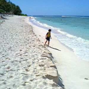 初めて行きました。道中は、凸凹道があって、バスが壊れるんじゃないかと、心配しました。が、ビーチを見たとたん青い空と白い砂浜、エメラルドグリーンの海に感動しました。リピーターになりそうです。