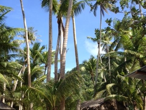 高いヤシの木と青い海♪