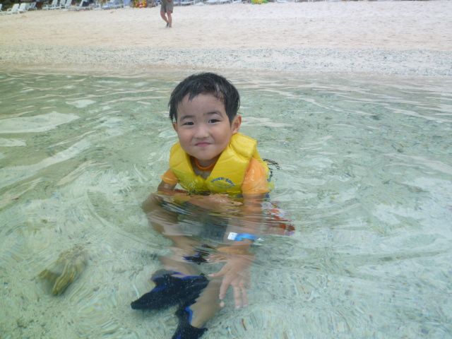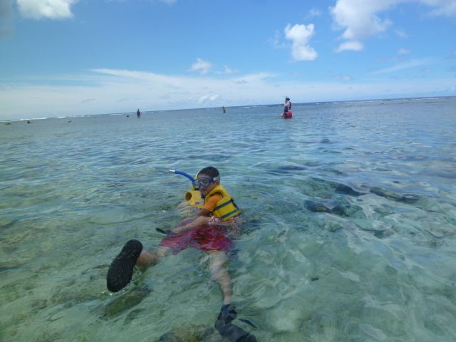 浅瀬で透明なので3才の息子もこわがらずに楽しんでいました。