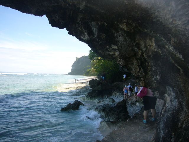ザ・ビーチで送迎車を降り、海岸沿いの岩場道を進むとビーチに到着します。滑りやすいので注意が必要です。