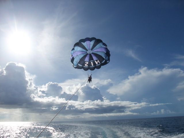 最後、パラセーリングを予約していた人だけタモン湾というところでパラセーリング。初めてだったので少し怖かったですが、グアムの景色を一望できて最高でした。