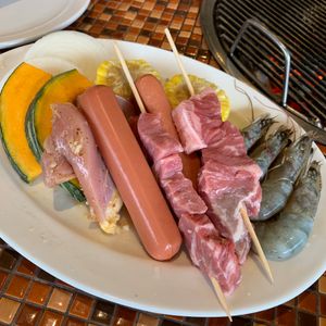 バーベキューの方は、量も十分、味も大満足でした!塩胡椒の味付けでもよいですが、サラダバーにあったタレを使ってた美味しいです。