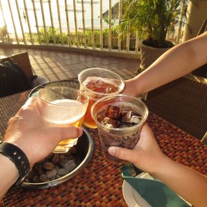 事前にビーチサイドの席をリクエストし、運良く一番いい席を確保して頂く事ができました。天気も良く最後の最後まで太陽を見ており、食事そっちのけとなりましたが、水平線に沈む夕日には感動しました!!!食事の肉、シーフードもおいしかった!バイキグ形式のサイドメニューも充実しており、これだけでもお腹いっぱいになっちゃいます。缶ビールとソフトドリンクは飲み放題でしたが、ホテルで飲んでいたビールmiller Liteと同じだったので、いくつか銘柄がセレクトできればなお良かったと思います。