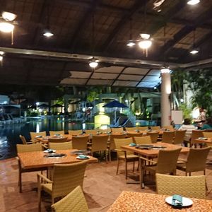 あいにくの雨でサンセットは拝めませんでしたが、席に水がかからないよう大きなカーテンがあったため大雨だったにも関わらず特に気になることはありませんでした。