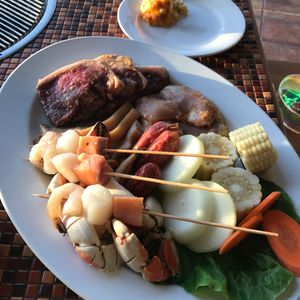 メインは牛、豚、鶏、ウインナー、シーフードもあり食べ切れないほどでした。