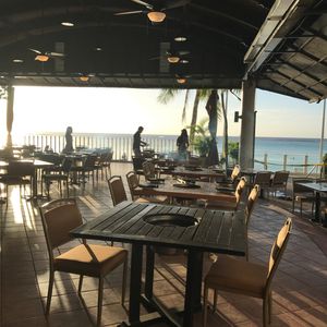 GUAMに夕方到着してその夜のdinnerにと予約しました。雲が少し多かったのですが、雲の間からのsunsetが言葉では表せない程キレイでした。何と言ってもロブスターに驚きました!焼いてもOK!ボイルもOK!テーブルに運ばれてきた時はまだ少し動いてました。ボイルは、お店の方にお願いすれば気持ち良くOKしてくれます。サラダは少しクセがあるのでセロリとかが苦手の人は合わないかもです。是非また行きたいです。