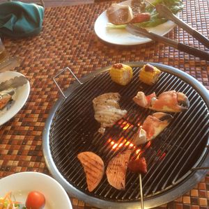 夕日を見ながらのバーベキュー最高でした。食べきれないほどのお肉と海鮮、ドリンクも飲み放題、野菜も食べ放題で本当に最高です。たまたまですが、夕日もきれいに見えたので、旅行最終日に素敵な思い出ができました!