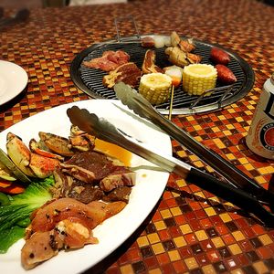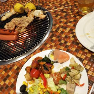 席に着くとすぐにお肉や海鮮のセットが届き、すぐに焼き始めることができます!お肉が柔らかくて美味しいです!牡蠣の開け方やカニのむき方に悪戦苦闘しているとスタッフの方が代わりに殻を外してくださいました(*^^*)その手さばきの良さに感動しました!!!スタッフの方は皆さん気さくで居心地よく過ごせます☆飲み放題ですが、お酒はビールのみでした