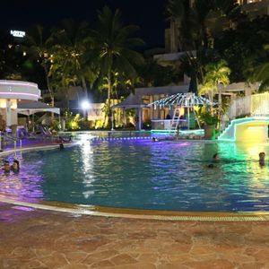 6:00からの予約で、ちょうどサンセットを眺めながらのBBQでした。スタッフのみなさんもとてもよく気がつくかたばかりで気持ちよく食事を楽しむことができました。BBQ以外にもバイキング形式でたくさん用意されていましたが、お肉もボリュームがありましたのでバイキングのほうはあまり食べることができませんでした。残念。食べ始めたころは日差しがきつかったのですが、日が沈みかけてくるととてもいいかんじで夜になるとプールのイルミネーションもきれいでした。大満足です。