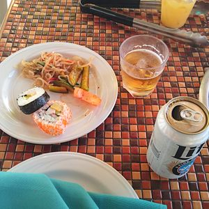 18時スタートの申し込みで、迎えが17時5分だったので、早すぎ?と思ったけど、ウェスティンに到着後、ビーチサイドまで移動して、席に落ち着いたのが、17時45分くらいでした。しかも、お店の方が18時前だけど、アイスは食べてよいよって言ってくれたので、子供たちはよろこんで食べてました‼ただ、フライドポテトを期待してたので、ビュッフェになかったときは、偏食な子供たちが食べるものないじゃんと思って、ショックでした。だけど、結局、下の子は、のり巻きを気に入ってたくさん食べました♪お兄ちゃんは、BBQのお肉が美味しかったみたいで、たくさん食べました♪パパもビールたくさん飲めて、最終的には、みんな大満足でした‼