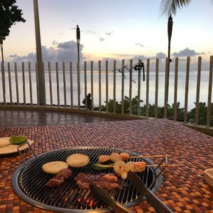 途中でビーチに行こうと思っても焼いているので2人で席を立つ訳にもいかず、もう少し景色を眺めならが食事がしたかったです。