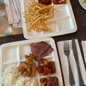ご飯は和食から洋食さまざまで、鮪のポキもありました。デザートのアイスやジュースも豊富です。