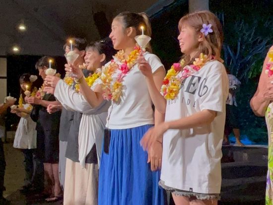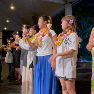 今回ハネムーンでグアムに訪れ、気になってたこちらのファイヤーショーの予約をしました。予約時に誕生日のお祝いが行えるので誕生日の方がいれば名前を書く欄があり、試しに私たちのウェディングのお祝いも可能か問い合せたところ、可能だと仰っていただきお願いしました。当日、誕生日の方たちのお祝いが終わった後、本当に私たちの名前も呼ばれて、まさかのステージにまで呼ばれて皆さんにお祝いしていただけて素敵な時間になりました。