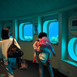 1つ目は海中展望塔で、螺旋階段を下って海中に降り、窓越しで海中の魚を水族館のように眺めることができます。