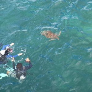 浅瀬では見られないたくさんの魚と、人間に慣れてる海亀も当たってくる勢いで、それは楽しかったです。