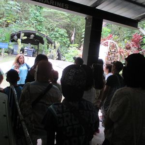 60過ぎのカップルですが、子供の挙式のためグアムへ20年ぶりに訪問。半日時間が空いてたのでこのコースに参加しました。予約・支払・バウチャーを印刷してグアムへ。DFSギャラリアの館内見取り図をプリントして、当日集合場所へ。DFSの見取り図では3Fがバスの発着場となっていたので、そこへ20分ほど前にいくと、40分くらい前に出発する別の観光ツアーに参加するお客様がいて、バスが来ないと云って、ウロウロしていたので私たちも不安に。結局、1階に降りて入口で待っていると、私たちの参加するバスが来ました。上記の人々は乗り遅れたみたいです・・・【集合場所の見取図】があると安心します・・・