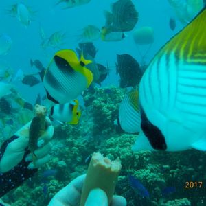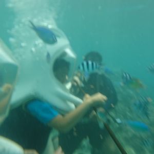 他の方はもっと奥の深い方まで行ったようですが、私たちは2メートルも深くない所だったかもしれません。それでもお魚は沢山いましたし、インストラクターさんがバブリングしてくれたり、充分に楽しめました。